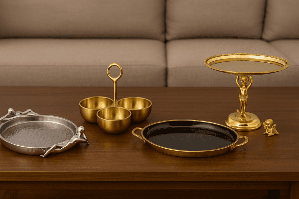 ظروف پذیرایی مثل ظروف لوکس پذیرایی بلزا، از جنس‌های مختلفی ساخته می‌شن – از برنج و استیل گرفته تا ترکیب چوب‌وبرنج.