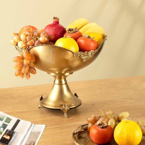 برای مثال، می‌تونی نگاهی بندازی به میوه‌خوری برنجی کارولین که سطح طلایی و پرداخت‌شده‌ش، نمونه‌ی خوبی از همین نوع مراقبته.