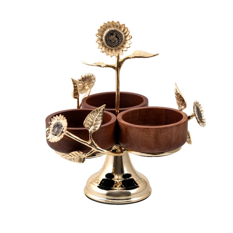 اردو سه پیاله چوب و برنج گل آفتابگردان