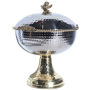 کاسه آجیل ژستو مدل GES-05 با پایه‌های فیگوراتیو و بدنه برنج آبکاری نیکل و کروم