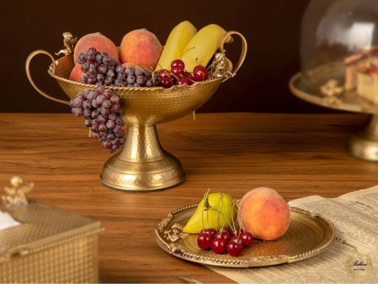 این ظرف معمولاً وسط میز قرار می‌گیرد و به‌همین دلیل همیشه دیده می‌شود. مدل‌های برنجی یا شیشه‌وبرنج برای چیدمان کلاسیک و مدرن مناسب‌اند و جلوهٔ میوه‌ها را چند برابر می‌کنند.