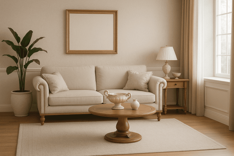 دکور کلاسیک و گرم (چوب، کرم، طلایی)