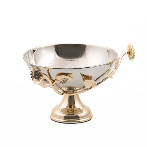 کاسه آجیل نصف چکشی برنجی گل آفتابگردان