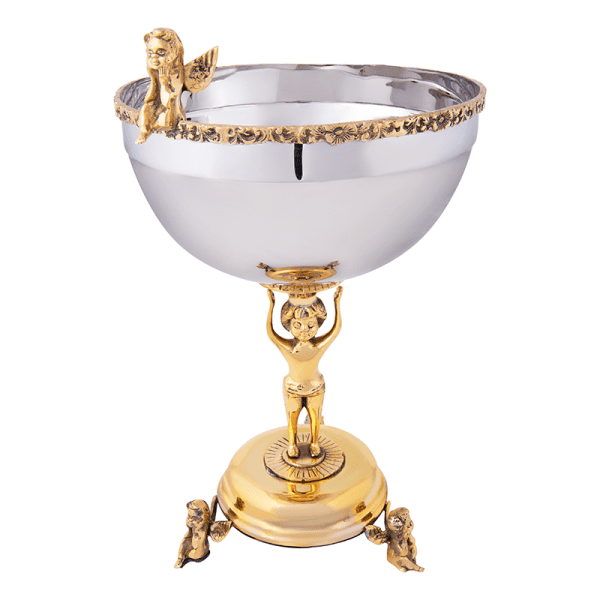 کاسه میوه‌خوری استیل و برنج تیارا مدل TI 4443 با طراحی ظریف و دست‌ساز، ترکیبی از درخشش فلز برنج و استیل براق است.