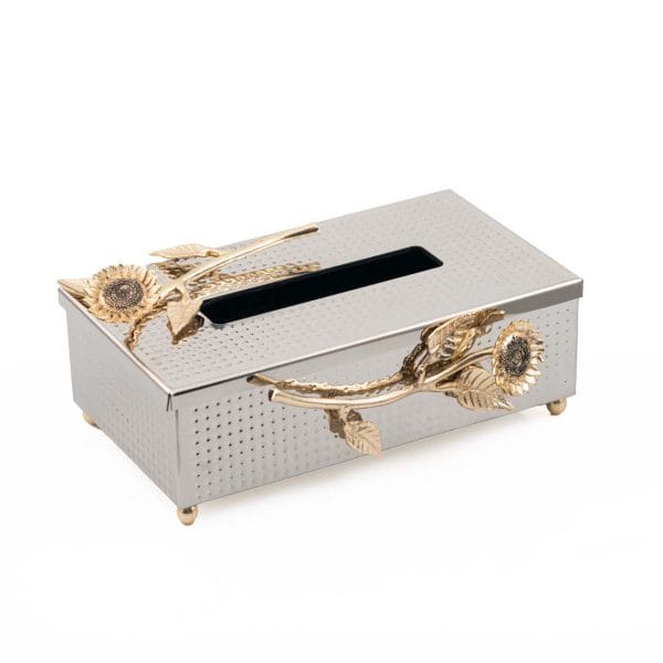 جا دستمال نصف چکشی برنجی گل آفتابگردان