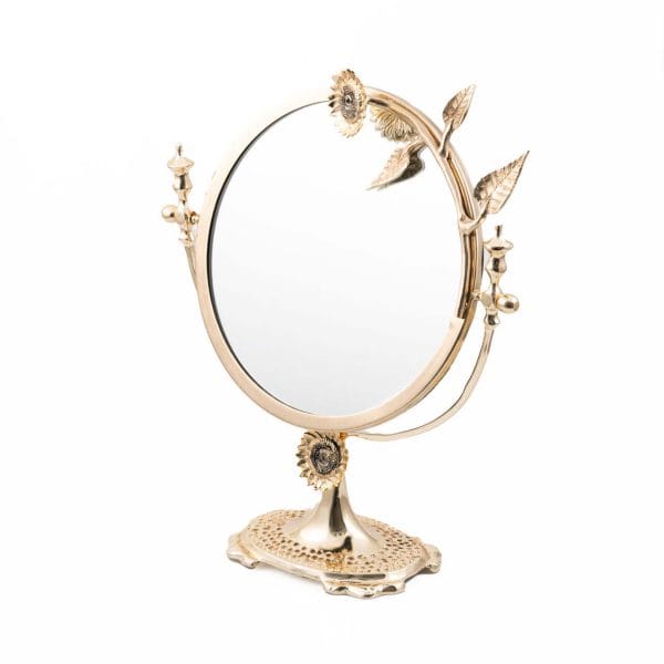 آینه نصف چکشی برنجی گل آفتابگردان