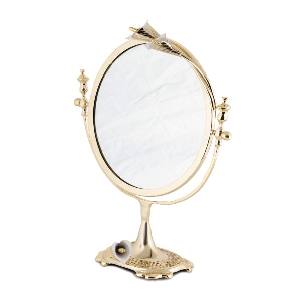 آینه نصفچکشی برنجی گل شیپوری مدل CLH-417 یک آینه رومیزی لوکس و کاملاً دکوراتیو است.