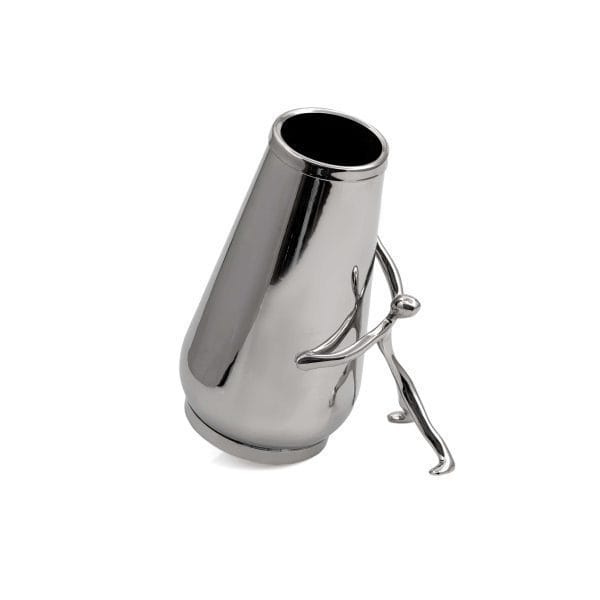سطح نیکل و کرومِ براقِ بدنه، ظاهری آینهای و بسیار شیک ایجاد میکند و فیگور ژستو با فرم ایستادهاش، جنبهای هنری و خاص به گلدان میافزاید.