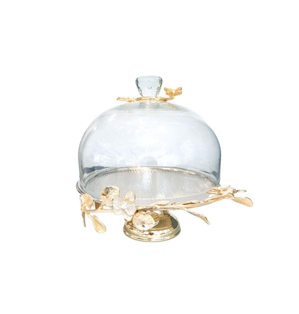 استند کیک درب دار استیل چکشی و برنج گل ارکیده