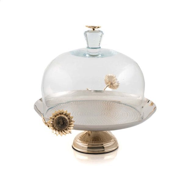 استند کیک درب دار نصف چکشی برنجی گل آفتابگردان