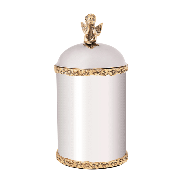 بانکه بزرگ استیل و برنج تیارا مدل TI 4458 یک ظرف لوکس و کاربردی با طراحی استوانهای و بدنه استیل براق است که در ترکیب با تزئینات برنزی، جلوهای بسیار شیک و چشمگیر پیدا کرده است. درب گنبدی شکل همراه با مجسمه برنزی، ظاهر این بانکه را خاص و مناسب چیدمانهای لوکس پذیرایی و آشپزخانه میکند.