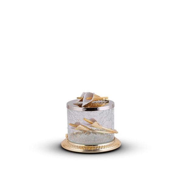 بانکه کوچک نصفچکشی گل شیپوری مدل CLH-408 یک ظرف لوکس و کاربردی برای نگهداری تنقلات، شکلات، قند، ادویه یا آجیل کمحجم است.