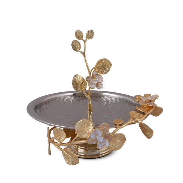 شیرینی خوری استیل چکشی و برنج گل ارکیده