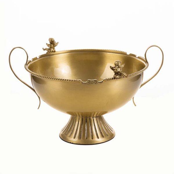 کاسه قدح دستهدار برنجی کویین مدل AQ7701 یک ظرف پذیرایی لوکس برای سرو میوه و استفاده در چیدمان میز پذیرایی است.